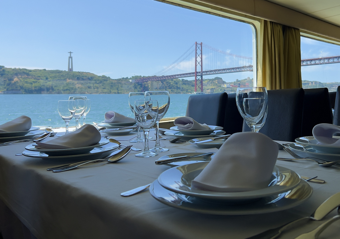 A bordo do Navio Ópera, aproveite uma refeição agradável enquanto navega pelo Rio Tejo. Seja ao almoço ou ao jantar, desfrute das vistas sobre Lisboa através das janelas panorâmicas, com o rio e os seus monumentos como pano de fundo.